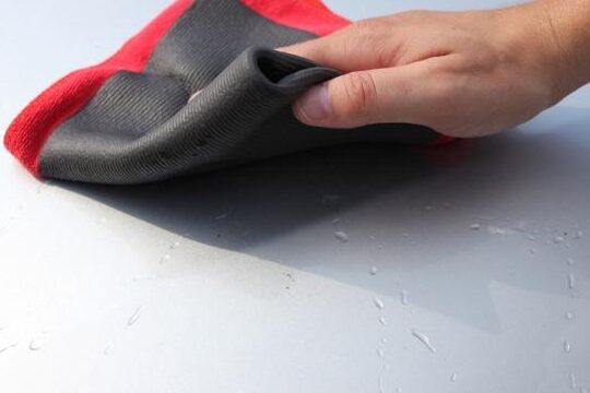5. Después de utilizar la bayeta descontaminante, seca la superficie de la pintura con una toalla de microfibra limpia y seca para evitar marcas de agua.